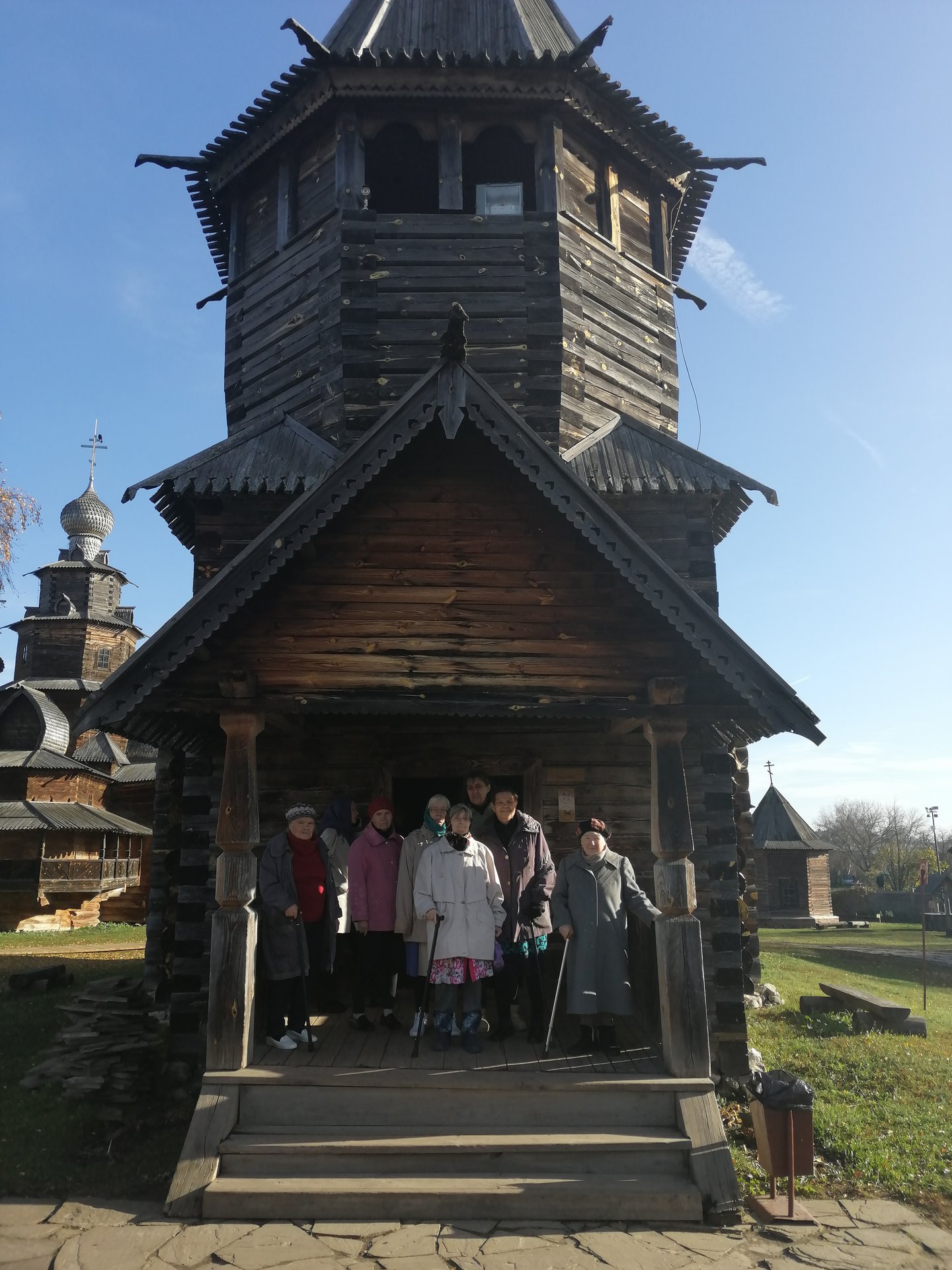 24 октября 2019г. группа получателей социальных услуг Суздальского дома-интерната для престарелых и инвалидов посетили Музей деревянного зодчества в Суздале – место, где можно совершить путешествие во времени, окунутся в атмосферу настоящей русской деревни. Для экскурсантов была проведена интересная интерактивная экскурсия по избам и другим помещениям деревни. Все это словно сошло со страниц книг по истории нашей страны 17–19 веков. Многие экспонаты можно потрогать руками, а самое главное окунутся в атмосферу крестьянского быта и посмотреть как жили в русской деревне люди разных сословий. После экскурсии получатели социальных услуг прогулялись по территории заповедника, насладились простором, редкими постройками, замечая такие неприметные детали, как запах трав в амбарах, резьбу на домах и скромность обстановки.