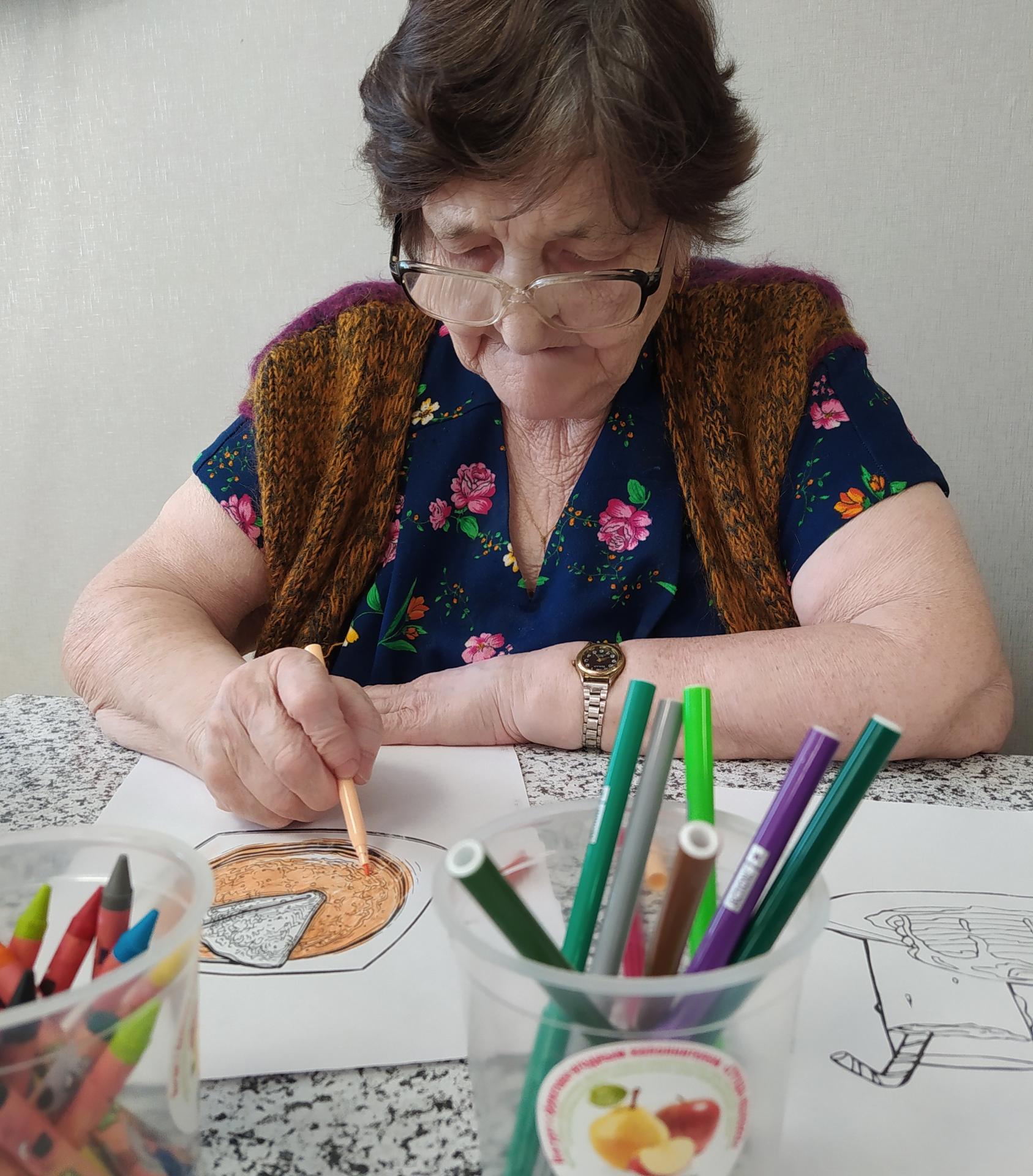 Тема о блинах выбрана не случайно, Масленица один из народных праздников, дошедших до нас сквозь века. Символом этого праздника и главным угощением на столах являются, круглые как Солнце, блины. Раскрашивая рисунки с изображением блинов, проживающие вспоминали свои семейные рецепты. Ведь это одно из самых простых и доступных способов с пользой и интересом провести время.