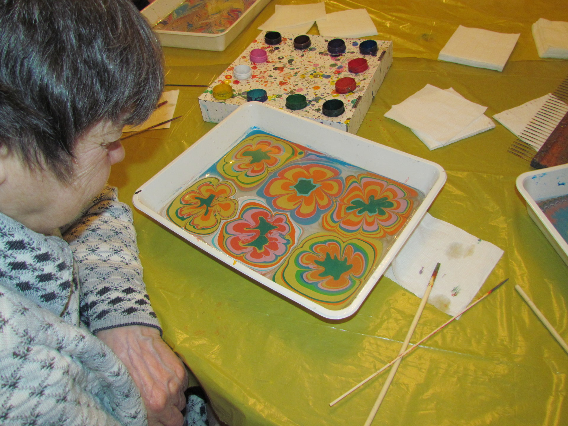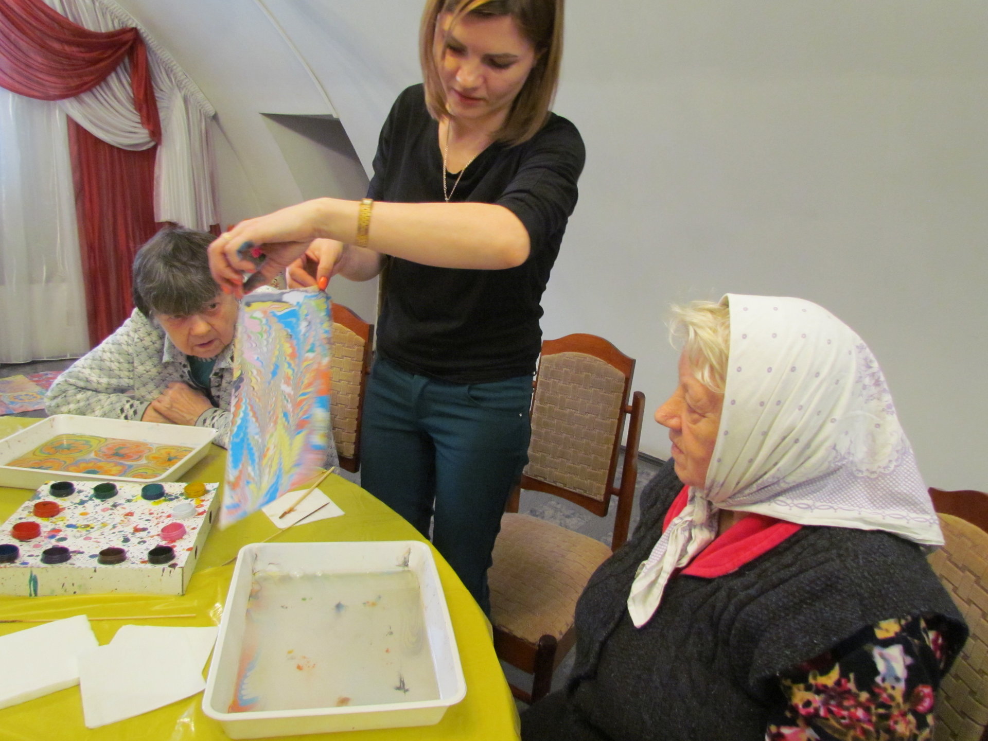 06 марта 2019г. в Суздальском доме-интернате для престарелых и инвалидов состоялся уникальный мастер-класс, посвященный технике рисования на воде – ЭБРУ. По этой старинной технике создаются оригинальные изображения, переносимые на бумагу и на ткань. Техника эбру не позволяет рисовать по образцу. Это дает толчок для творчества, выражению индивидуальности, а также развивает цветовосприятие, внимание, память, моторику рук. Уникальность материалов доставляет радость, сопричастность к «волшебству» красок.