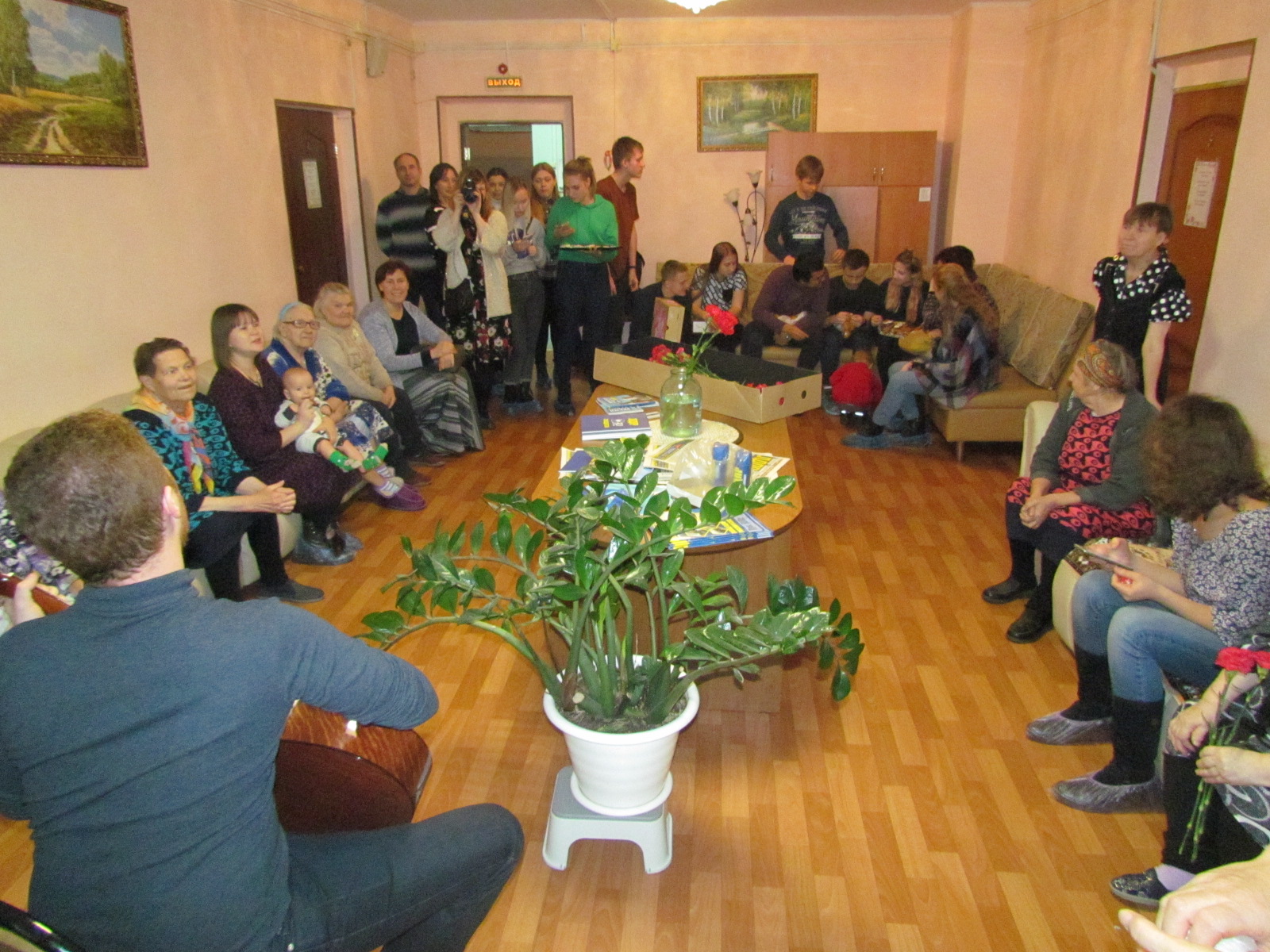 Администрация Суздальского дома-интерната выражает огромную благодарность участникам благотворительной группы «Добрые сердца», особенно гитаристу Сергею, который каждый раз радует своим пением и игрой на гитаре, центру поддержки во Владимире «Мамина Радость», ученикам 10 «А» класса средней образовательной школы №16 г. Владимира, а также педагогам и родителей учеников, представителям фракции ЛДПР, «Супермаркет цветов и декора Краснова» в лице руководителей Краснова Анатолия Анатольевича и Красновой Юлии Александровны, Рождественского Ильи Владимировича они передали для всех проживающих цветы и всем кто принял участие в благотворительной акции.