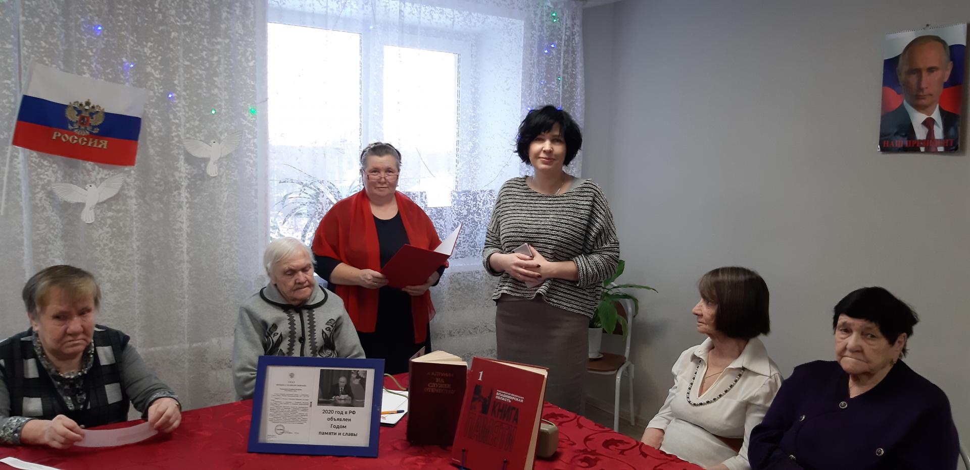 2020 год Указом Президента России объявлен Годом памяти и славы в целях сохранения исторической памяти и в ознаменование 75-летия Победы в Великой Отечественной войне.15 января 2020 года в отделение Торчино «Суздальский дом-интернат для престарелых и инвалидов» состоялось заседание в клубе «Книголюбов» - Открытие Года памяти и славы, познавательный час «Не гасимый огонь памяти». Слово для открытия мероприятия было предоставлено заведующей отделением Акимовой Марине Николаевне. Зачитан Указ Президента России В.В.Путина, всеми присутствующими на мероприятии исполнен Гимн России. Активное участие приняли получатели социальных услуг в чтение стихов о солдатах, о солдатской доблести и мужество народа, и пели песни военных лет.
