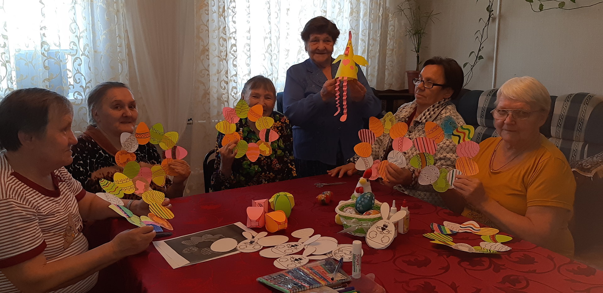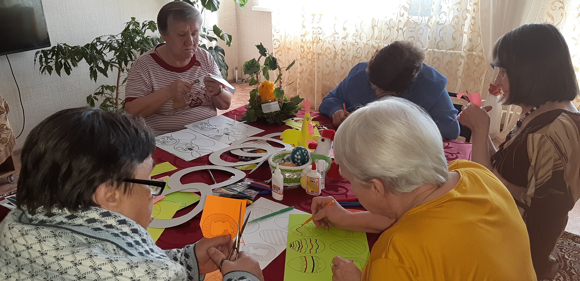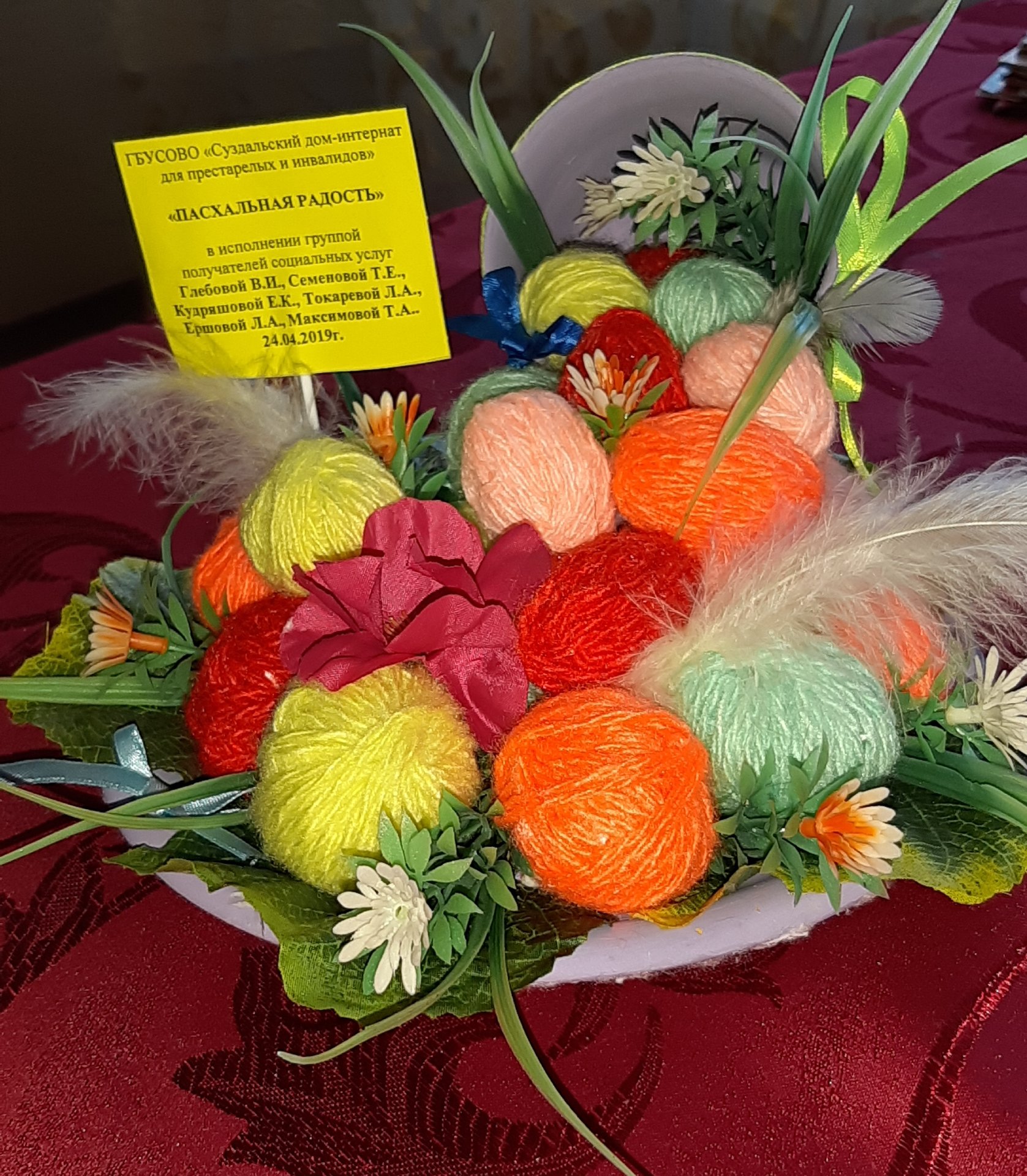 Каждый год все с нетерпением ждут светлого праздника Христова Воскресения. 26 апреля 2019 года в ГБУСОВО «Суздальский дом-интернат для престарелых и инвалидов» отделение Торчино прошел мастер-класс по декорированию яиц и пасхальных композиций. Получатели социальных услуг создали в отделение эту ни с чем не сравнимую праздничную атмосферу. Нет ничего теплее и лучше украшений, созданных своими руками. Сегодня женщины изготовили «Пасхальные сувениры» в виде веночка для каждой комнаты, который дарит хорошее настроение и ощущение светлой Пасхи. В завершении занятия оформили выставку пасхальных поделок. Лучшую совместную работу проживающих «Пасхальная радость» предоставили на выставку в департамент социальной защиты населения.