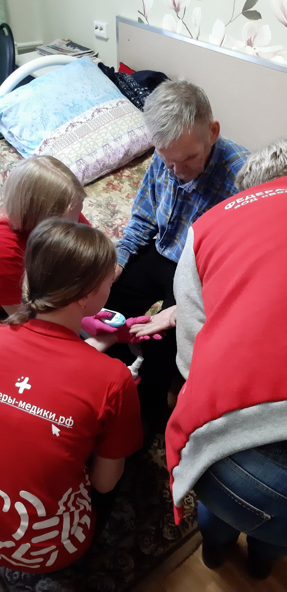 25 сентября 2019 года региональный координатор ВОД Волонтеры-медики Владимирской области Лопанова И.М. и преподаватель Смольянина И.В. с медицинскими волонтерами в рамках акции «Добро в село» в ГБУСОВО «Суздальский дом-интернат для престарелых и инвалидов» отделение Торчино у каждого получателя социальных услуг взяли кровь на сахар и сняли ЭКГ.