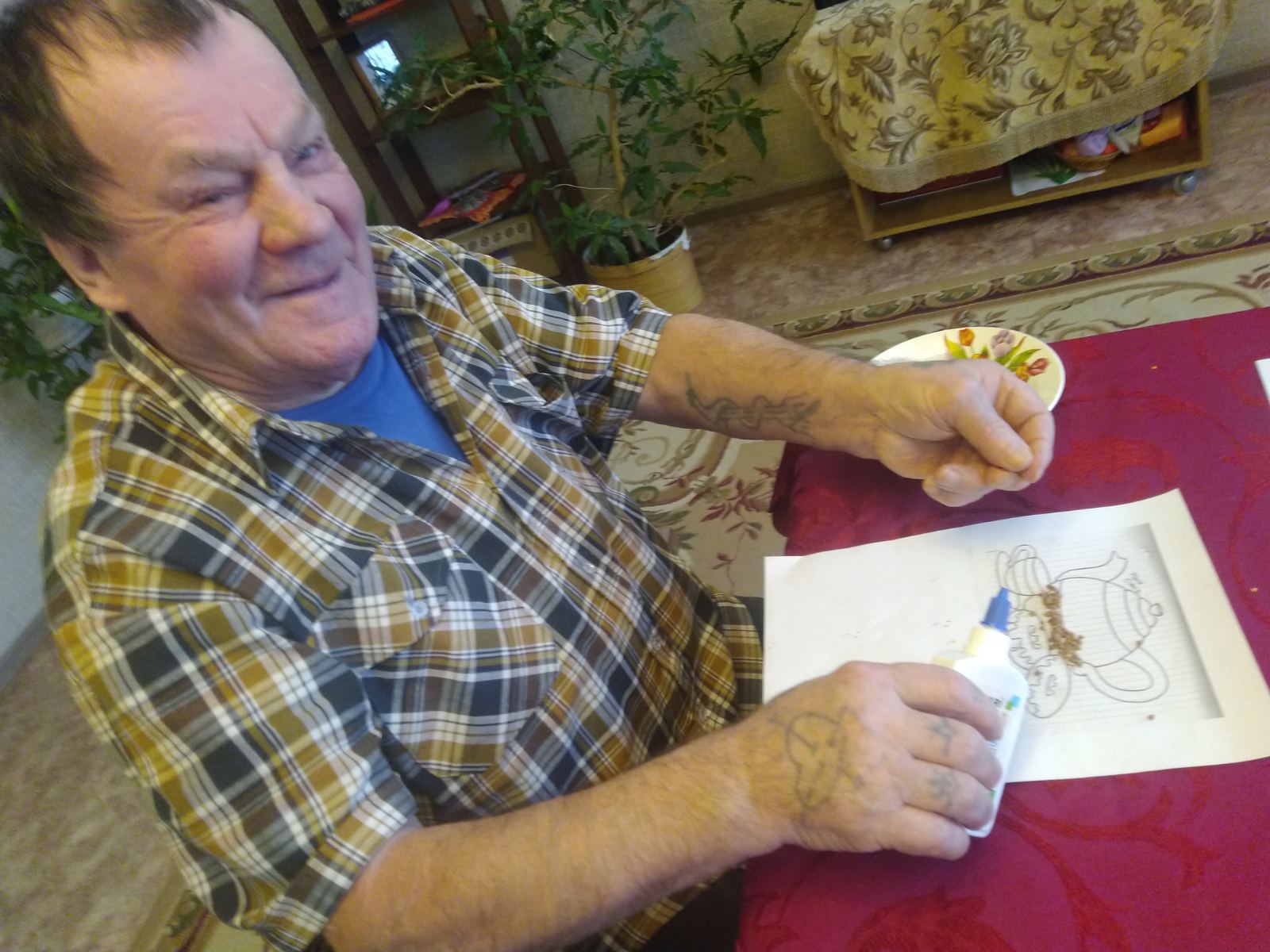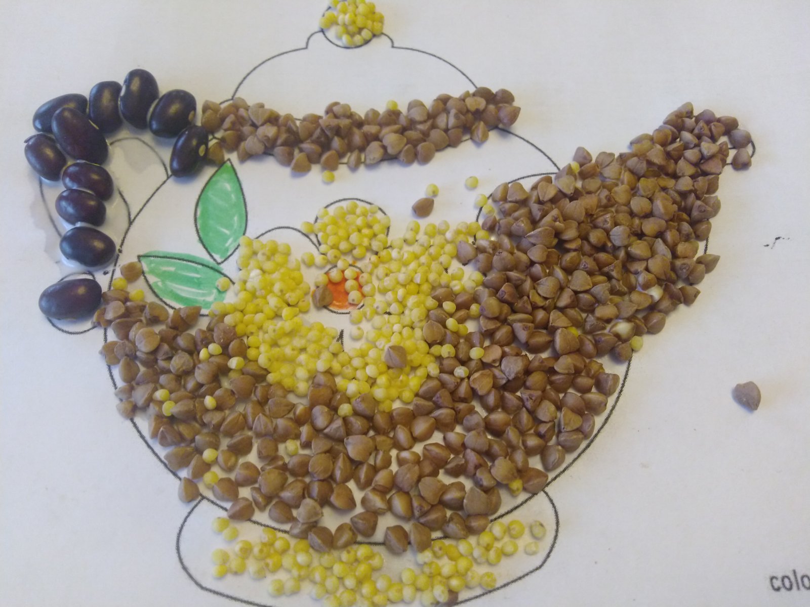 Изготавливать такие поделки – увлекательно и интересно, у многих проживающих вызвало восторг, что не только на кухне можно пользоваться крупами, но и в творчестве.