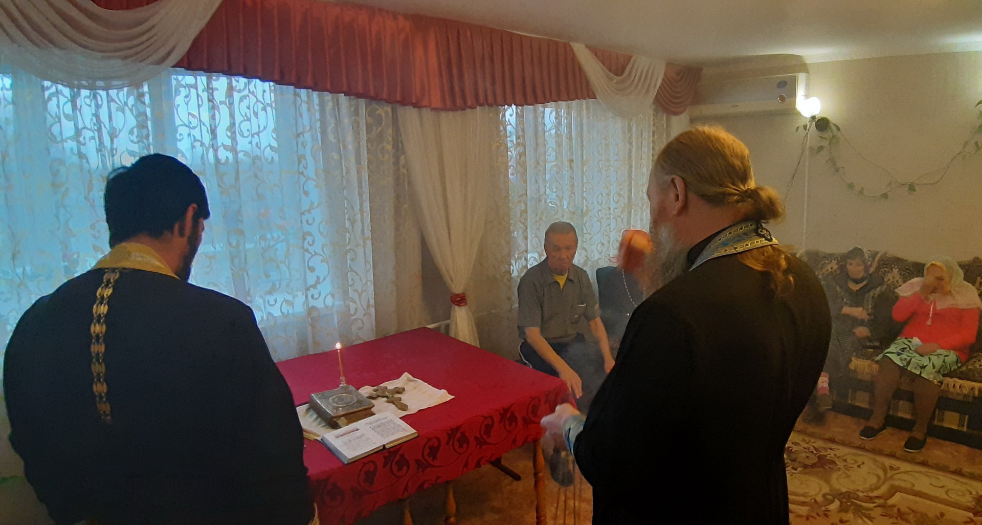 Отец Георгий провел праздничный молебен и поздравил всех с праздником. Маломобильных проживающих батюшка посетил в их комнатах.