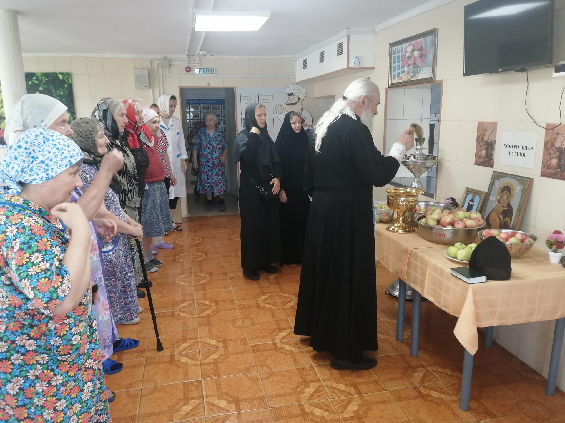 Летняя пора богата на праздники, в том числе и православные.19 августа в обеденном зале собрались постояльцы Суздальского дома-интерната для престарелых и инвалидов. Причиной этому - праздник Преображения Господня, именуемый в народе «Яблочным Спасом». В этот день принято собирать плоды яблонь, обязательно освящать их  и угощать окружающих. По старой доброй традиции в этот день в гости приехали священнослужители Свято-Покровского монастыря, чтобы поздравить всех со спасом и освятить яблоки. После молебна всех в доме угостили яблочками и пожелали всем крепкого здоровья.